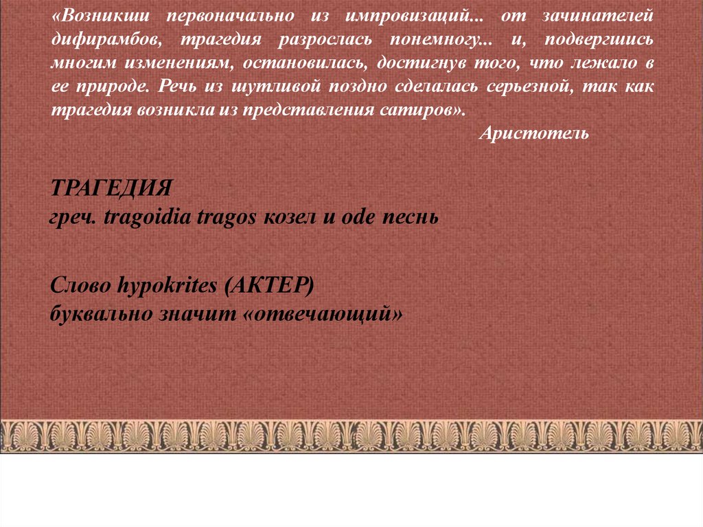 трагедия возникла из представления сатиров».