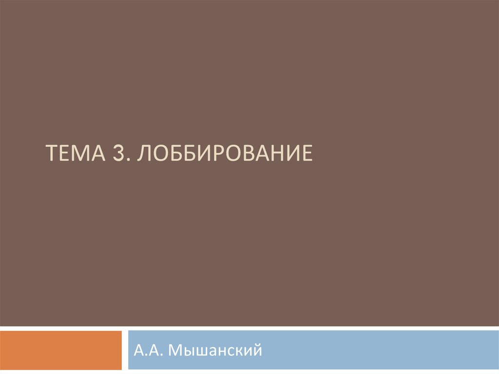 ТЕМА 3. ЛОББИРОВАНИЕА.А. Мышанский
