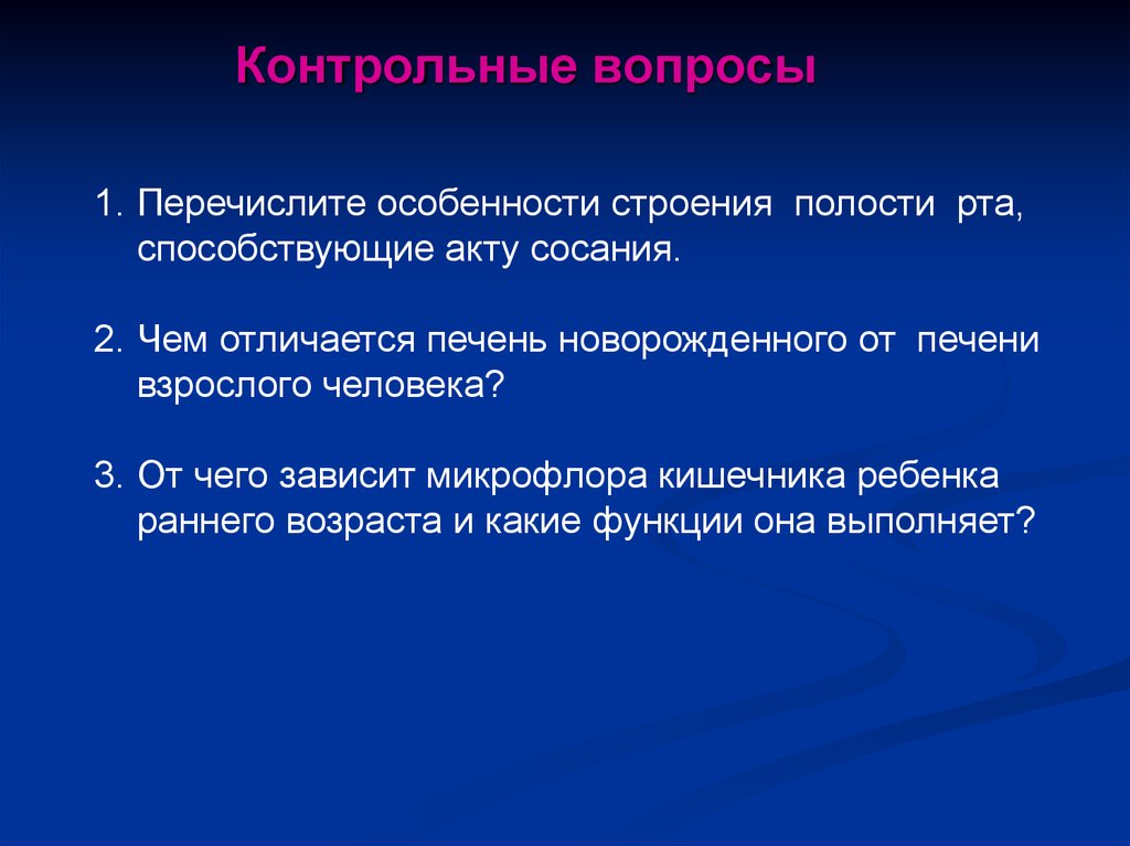 Контрольные вопросы1. Перечислите особенности строения полости рта,