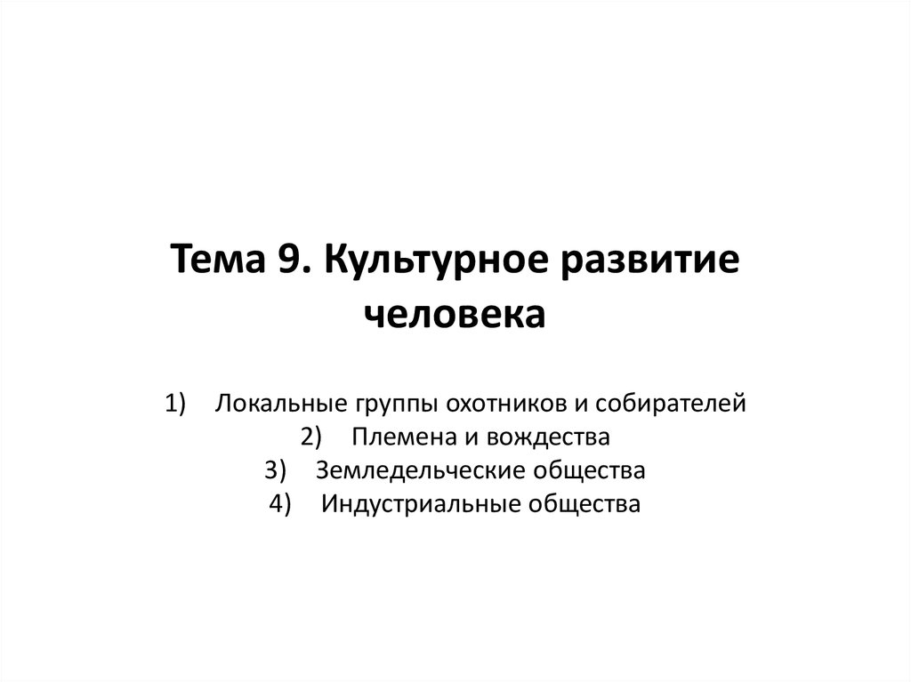 1. Тема 9. Культурное развитие человека