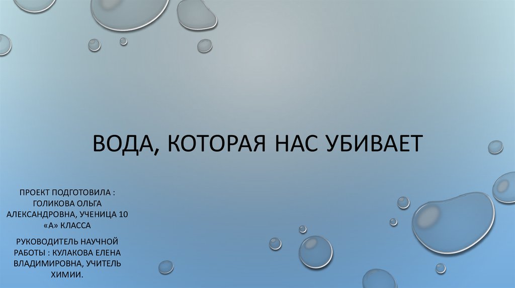 ВОДА, КОТОРАЯ НАС УБИВАЕТПРОЕКТ ПОДГОТОВИЛА :