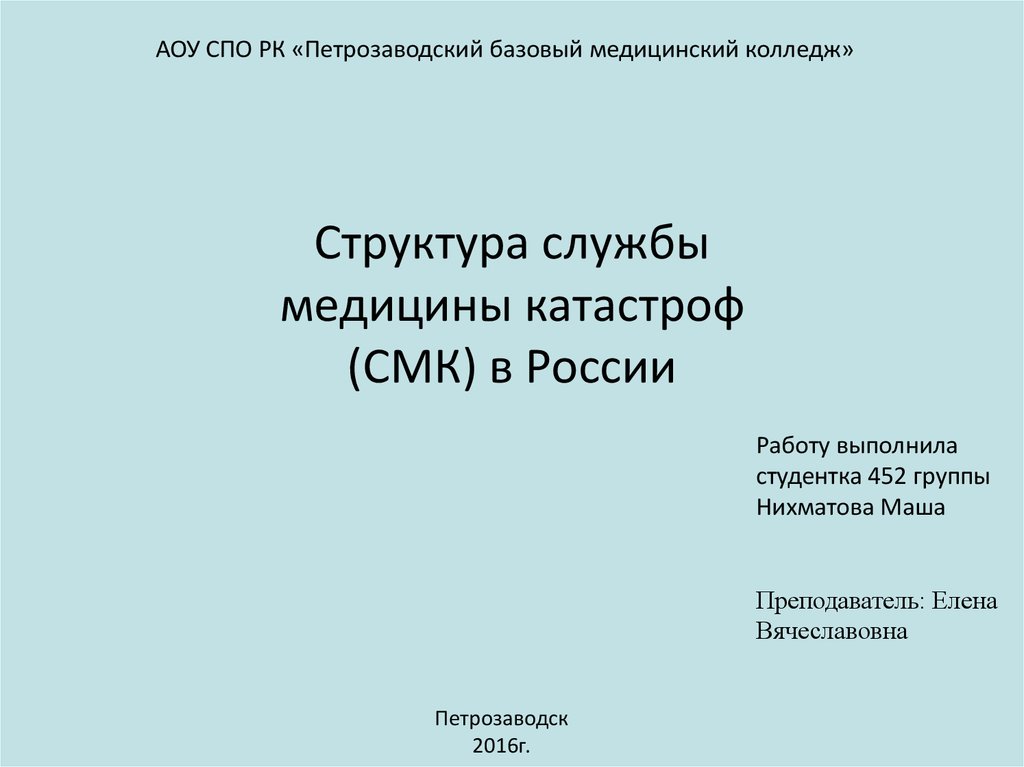 АОУ СПО РК «Петрозаводский базовый медицинский колледж»Структура службы
