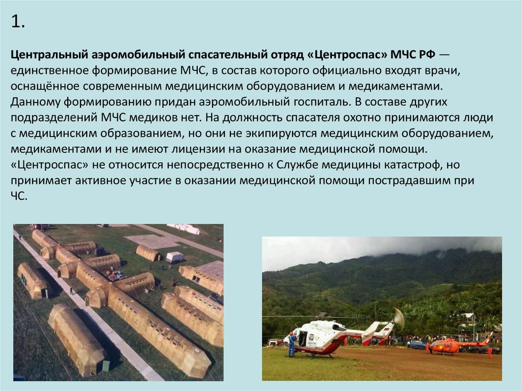 1.Центральный аэромобильный спасательный отряд «Центроспас» МЧС РФ —