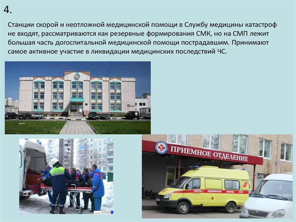 4.Станции скорой и неотложной медицинской помощи в Службу медицины катастроф