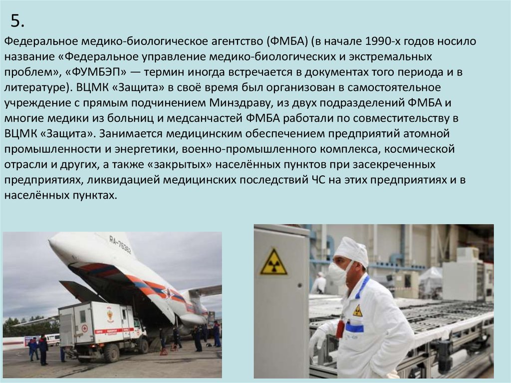 5.Федеральное медико-биологическое агентство (ФМБА) (в начале 1990-х годов носило