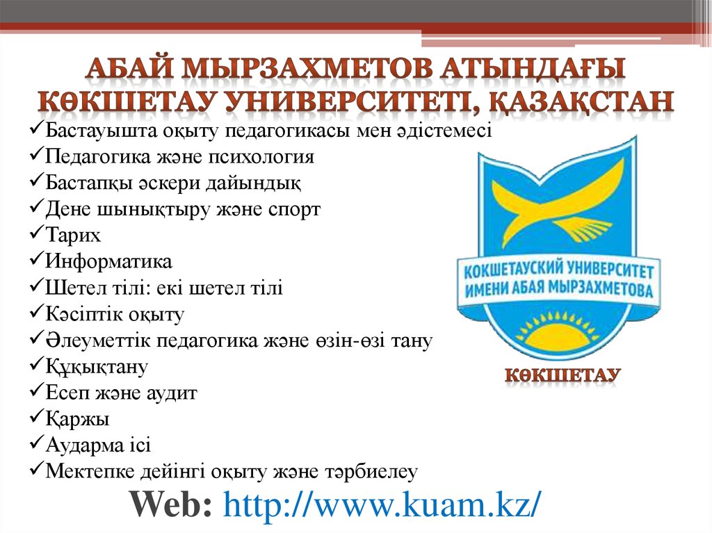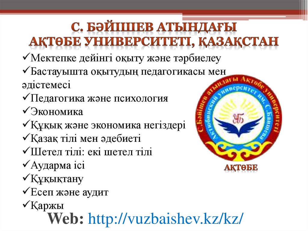 Web: http://vuzbaishev.kz/kz/