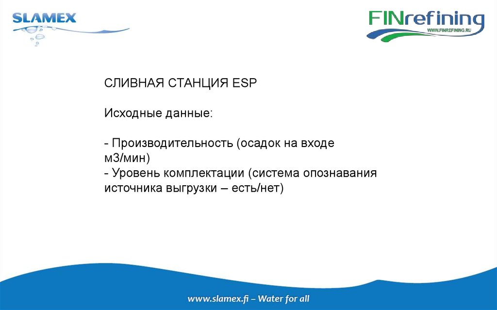 СЛИВНАЯ СТАНЦИЯ ESPИсходные данные: