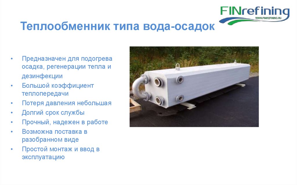 Теплообменник типа вода-осадокПредназначен для подогрева