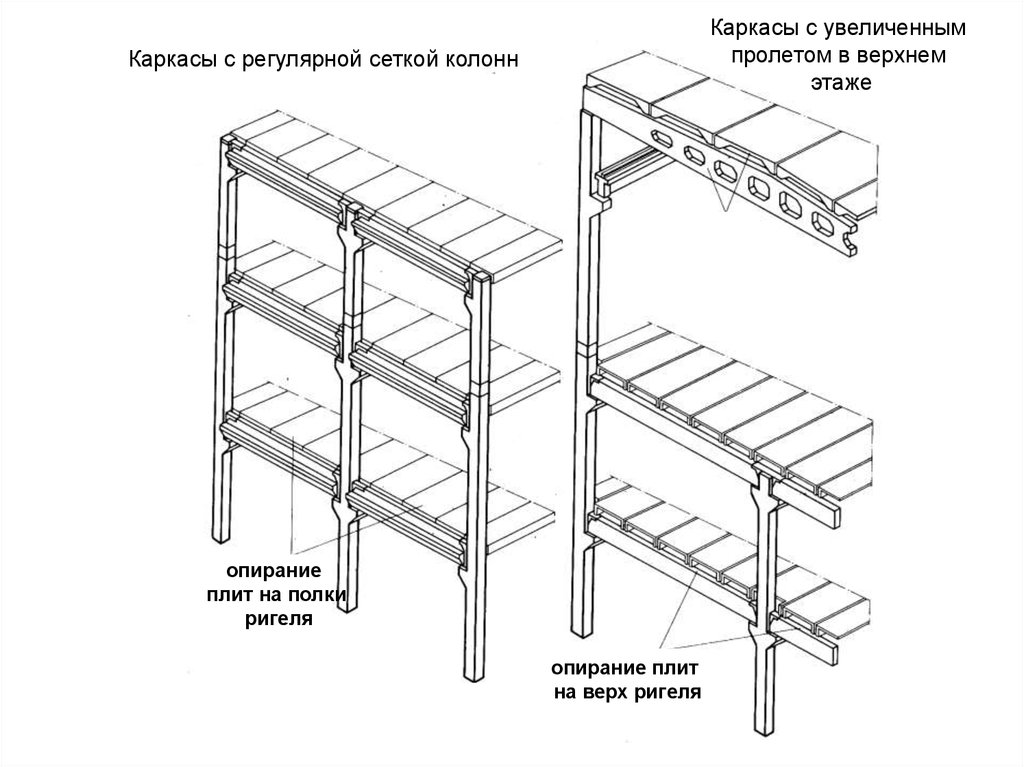 Детали сопряжения конструктивных элементовнесущего каркаса и перекрытий