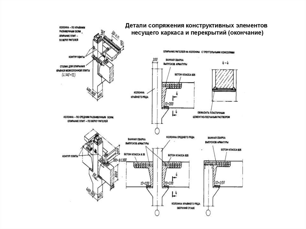 Детали сопряжения конструктивных элементовнесущего каркаса и перекрытий (окончание)