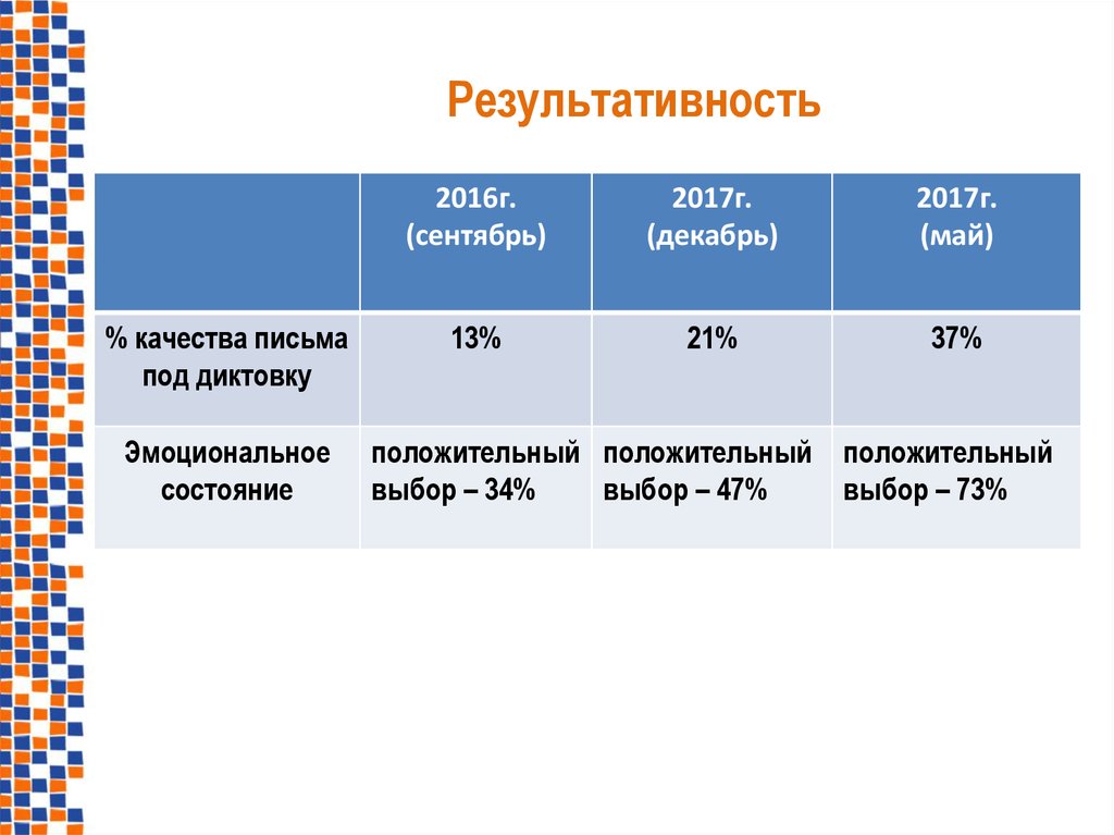 Результативность% качества письма