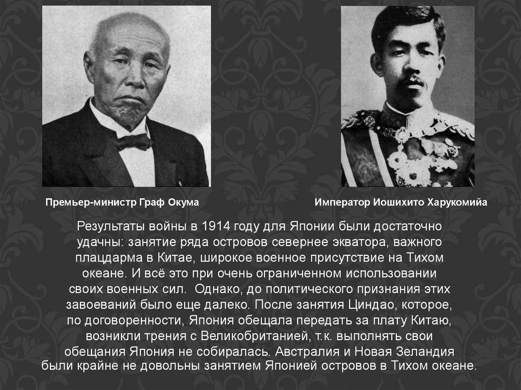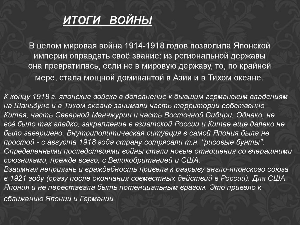 ИТОГИ ВОЙНЫВ целом мировая война 1914-1918 годов позволила Японской