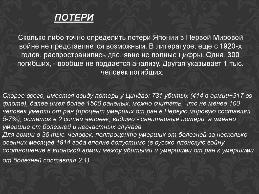 ПОТЕРИСколько либо точно определить потери Японии в Первой Мировой