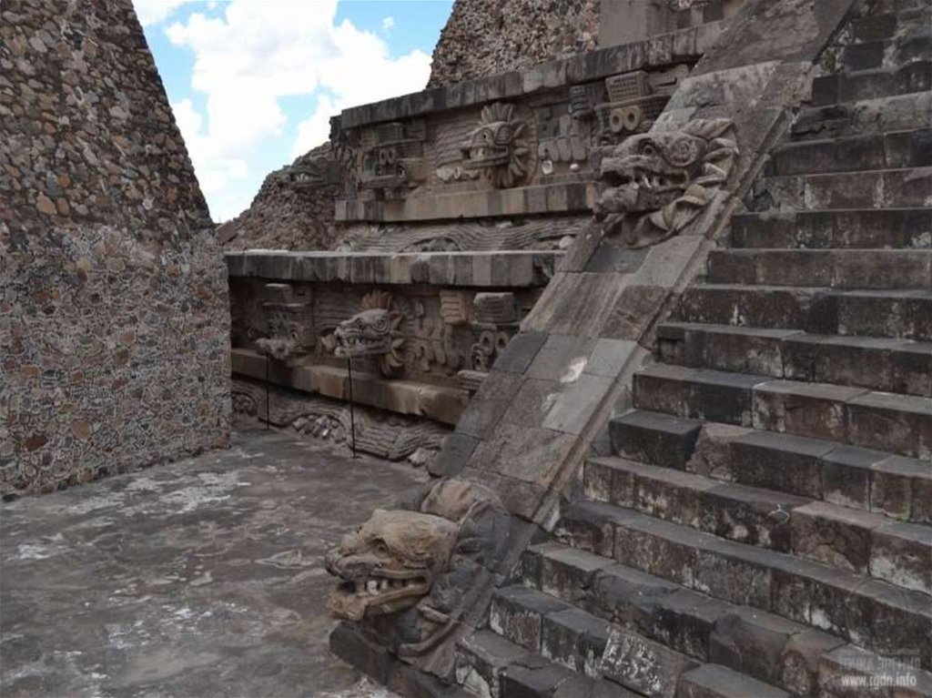 ХРАМ КЕТЦАЛЬКОАТЛЯОн расположен в Теотиуакане и представляет собой шестиярусную пирамиду, украшенную