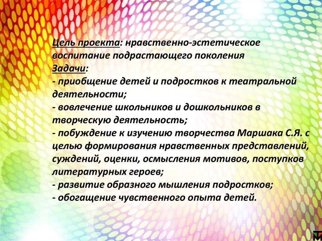 Цель проекта: нравственно-эстетическоевоспитание подрастающего поколения
