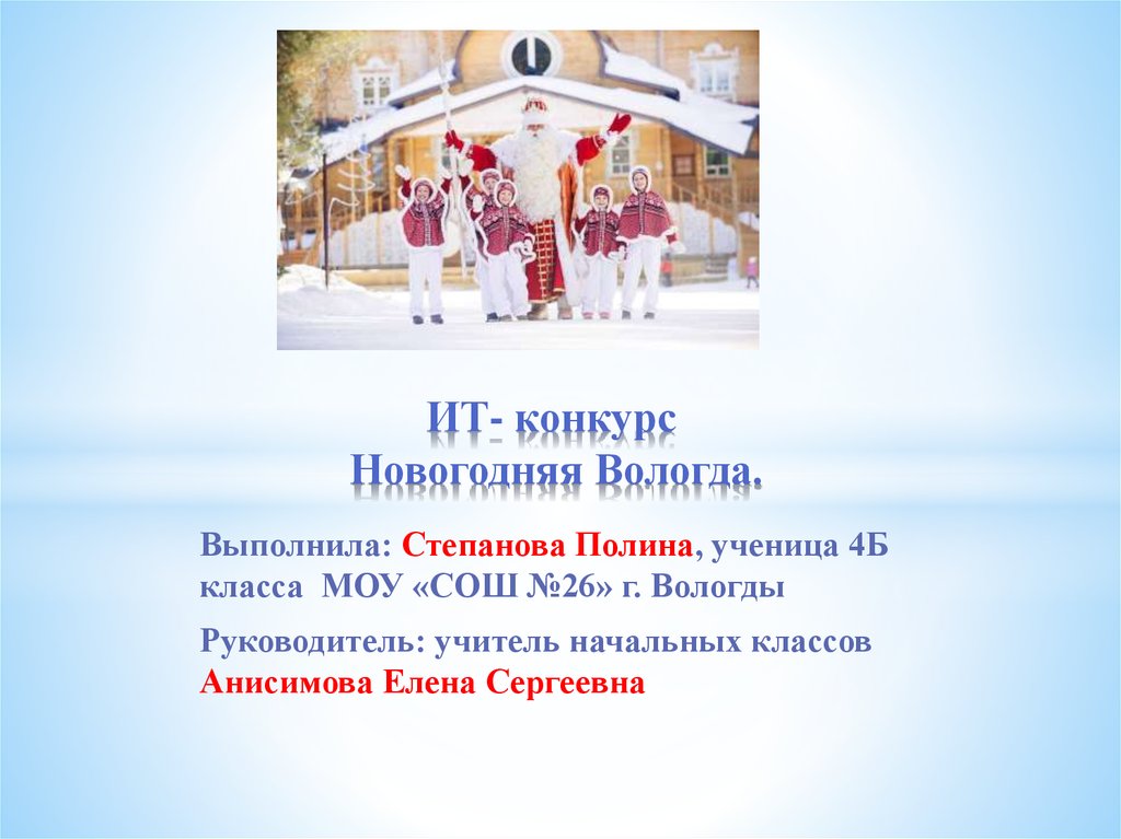 Выполнила: Степанова Полина, ученица 4Бкласса МОУ «СОШ №26» г. Вологды
