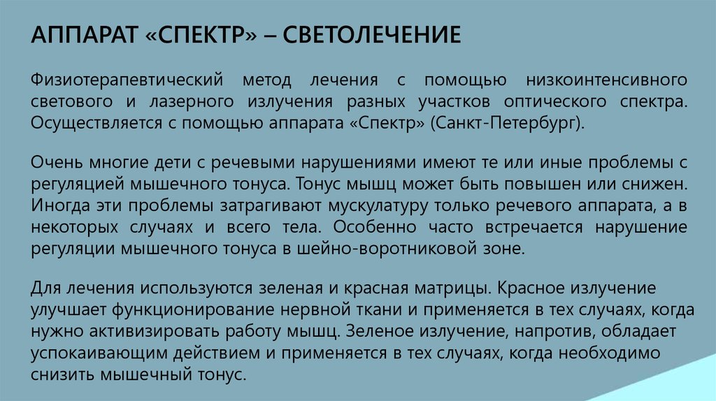 АППАРАТ «СПЕКТР» – СВЕТОЛЕЧЕНИЕФизиотерапевтический метод лечения с помощью низкоинтенсивного