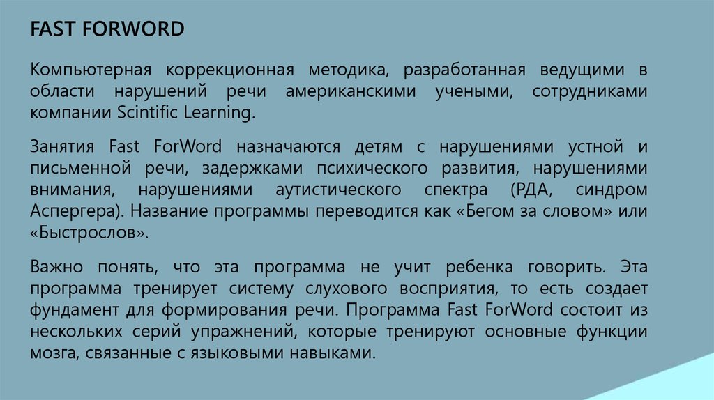 FAST FORWORDКомпьютерная коррекционная методика, разработанная ведущими в