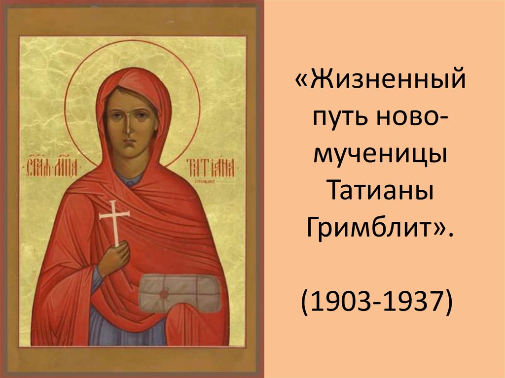1. «Жизненный путь ново-мученицы Татианы Гримблит». (1903-1937)