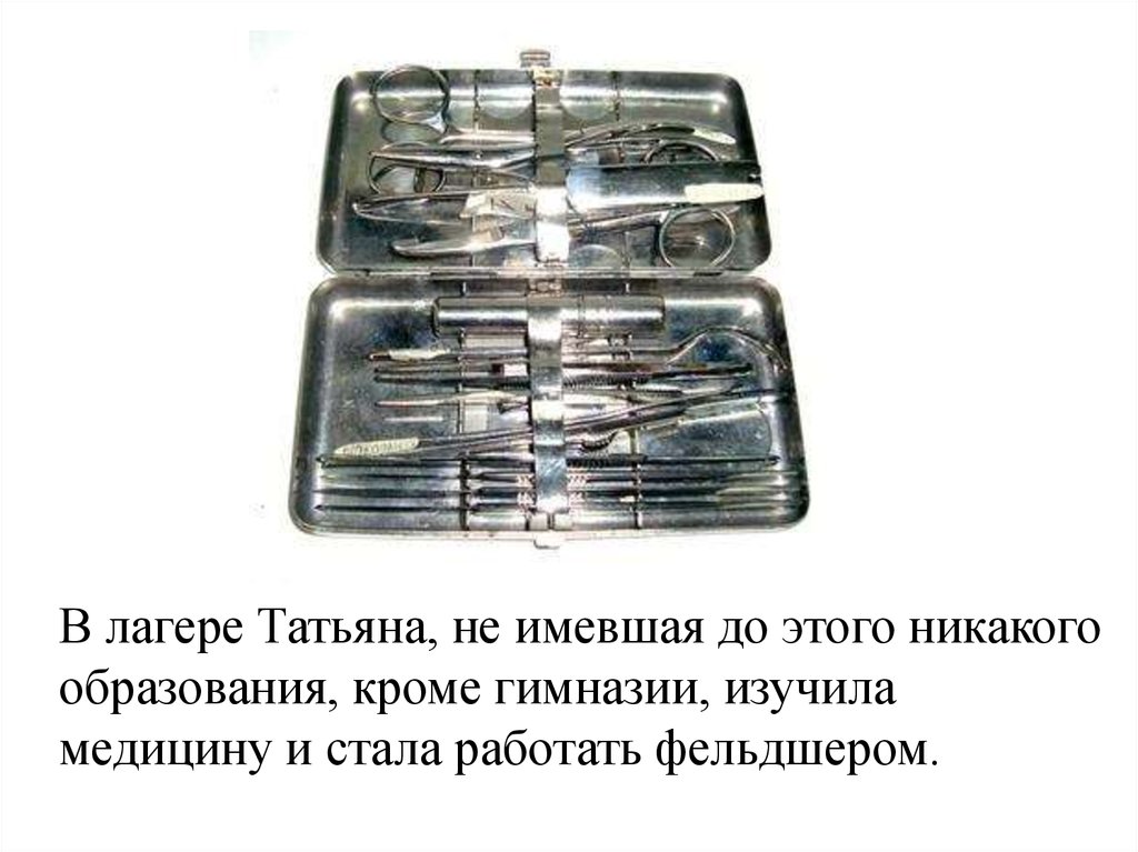 В лагере Татьяна, не имевшая до этого никакогообразования, кроме гимназии, изучила