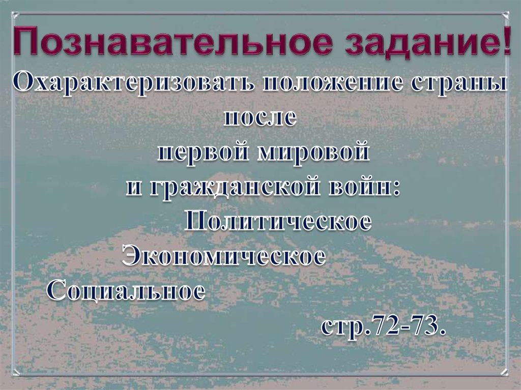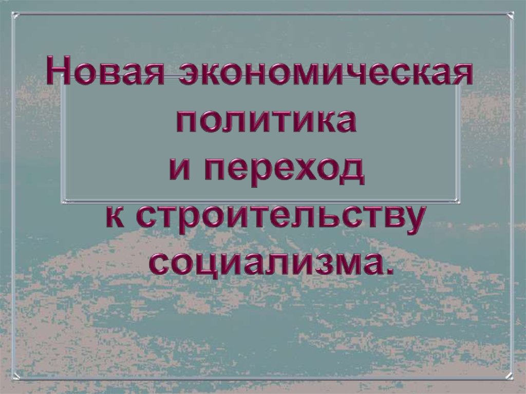 Новая экономическая политика и переход к строительству социализма