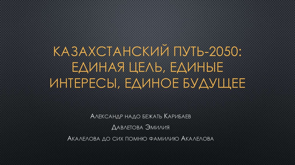 КАЗАХСТАНСКИЙ ПУТЬ-2050:ЕДИНАЯ ЦЕЛЬ, ЕДИНЫЕ