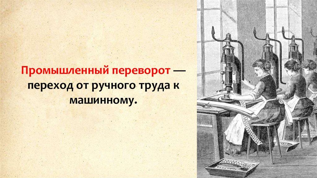 Промышленный переворот —переход от ручного труда к