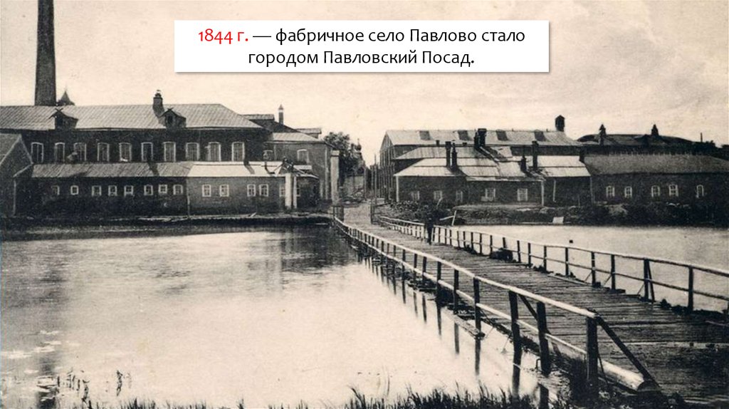 1844 г. — фабричное село Павлово сталогородом Павловский Посад.
