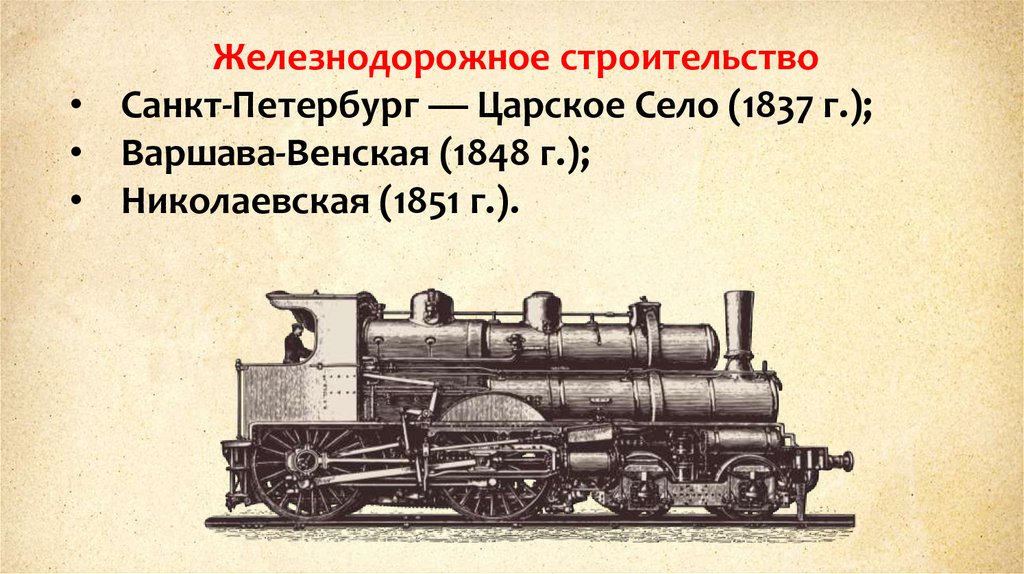Железнодорожное строительство• Санкт-Петербург — Царское Село (1837 г.);