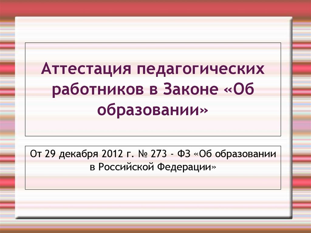 1. Аттестация педагогических работников в Законе «Об образовании»