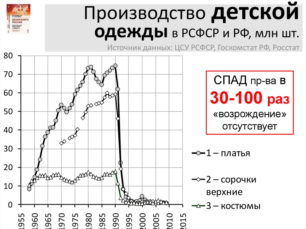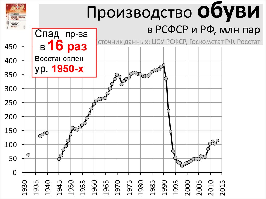 Спад пр-ваИсточник данных: ЦСУ РСФСР, Госкомстат РФ, Росстат