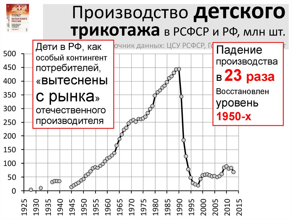 Производство детскоготрикотажа в РСФСР и РФ, млн шт.