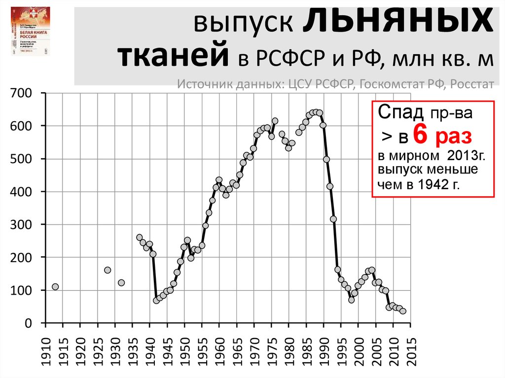 выпуск льняныхтканей в РСФСР и РФ, млн кв. м