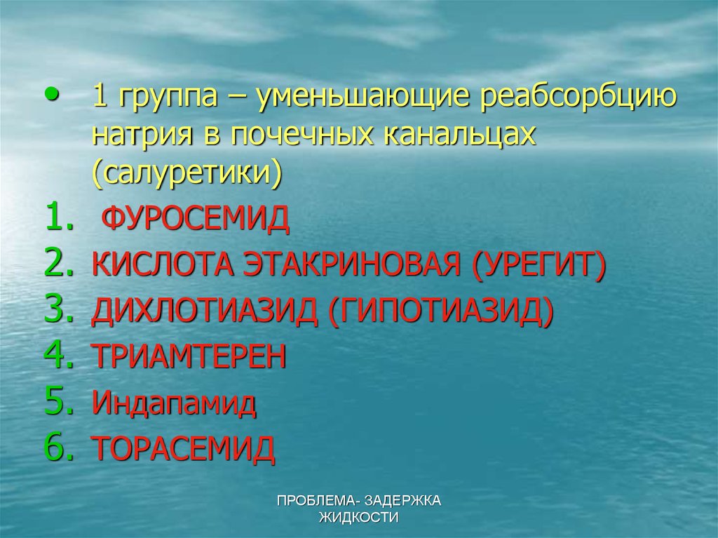 Диуретики. Проблема - задержка жидкости