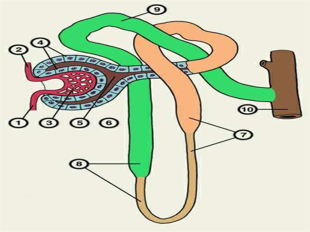 6. Структурной единицей почки является нефрон . Около 1 млн. в каждой почке.