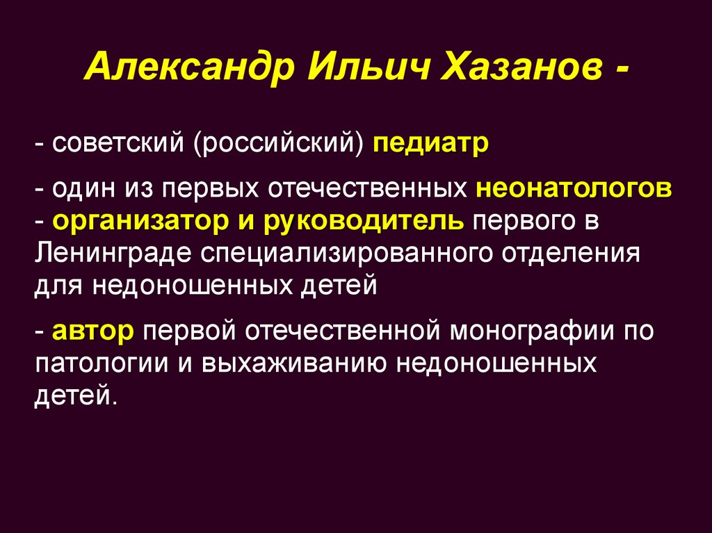 Александр Ильич Хазанов - советский (российский) педиатр- один из первых отечественных неонатологов