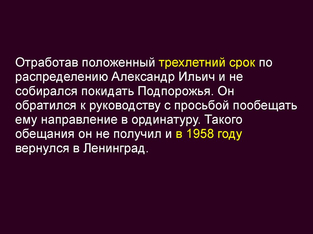 Отработав положенный трехлетний срок пораспределению Александр Ильич и не