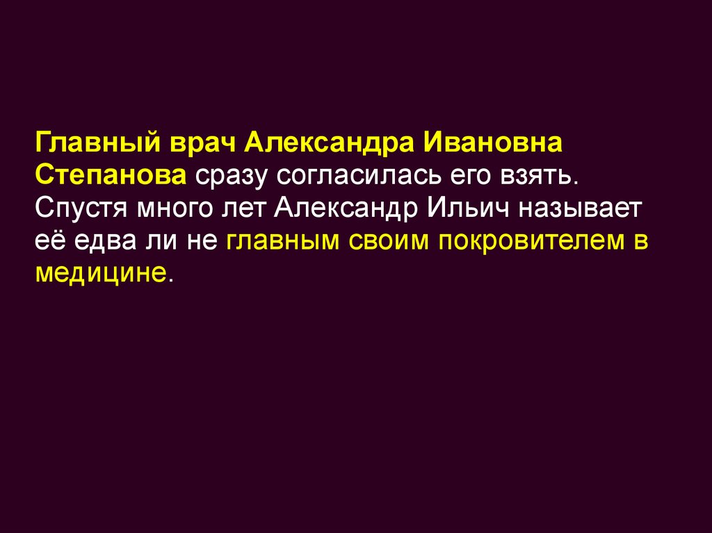 Главный врач Александра ИвановнаСтепанова сразу согласилась его взять.