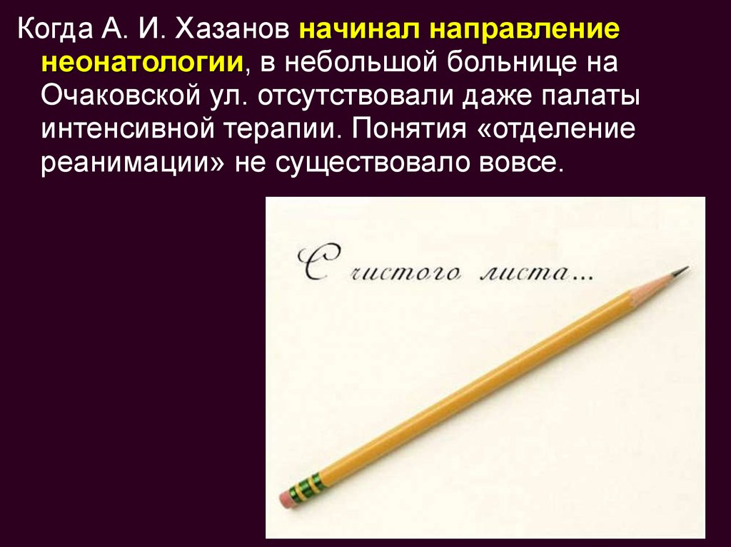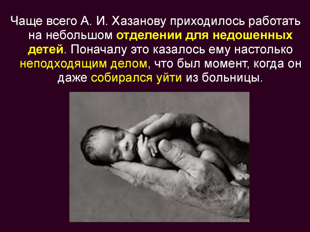 Когда А. И. Хазанов начинал направлениенеонатологии, в небольшой больнице на
