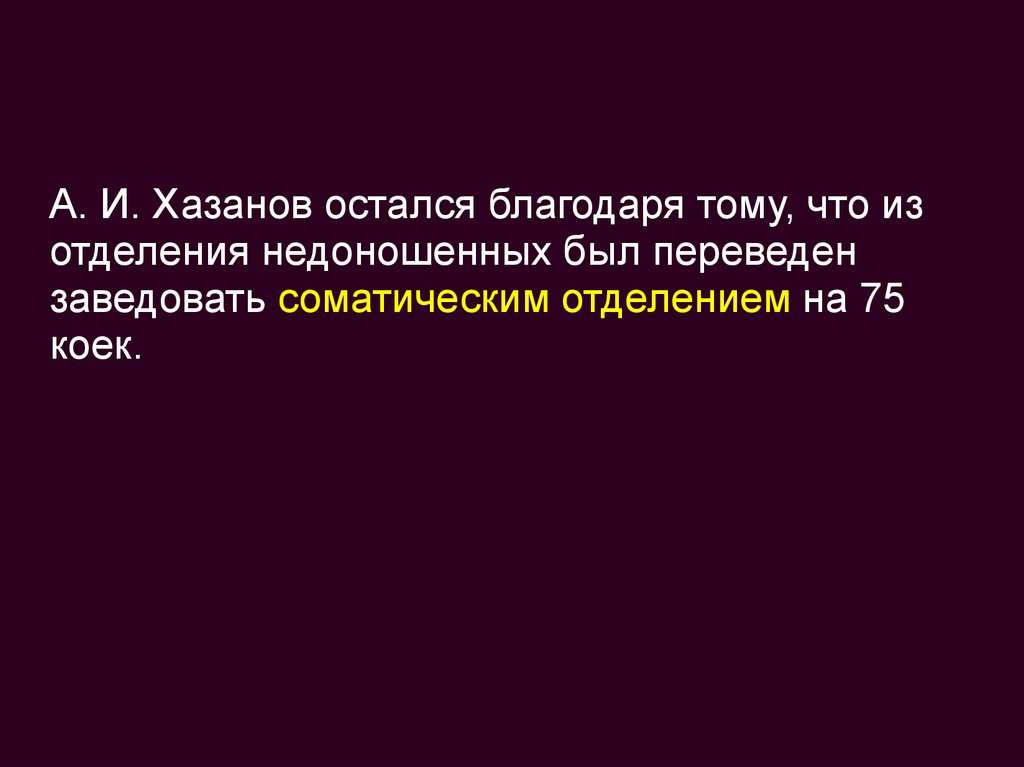 А. И. Хазанов остался благодаря тому, что изотделения недоношенных был переведен