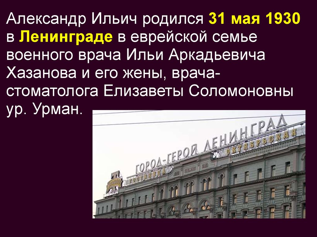 Александр Ильич родился 31 мая 1930в Ленинграде в еврейской семье
