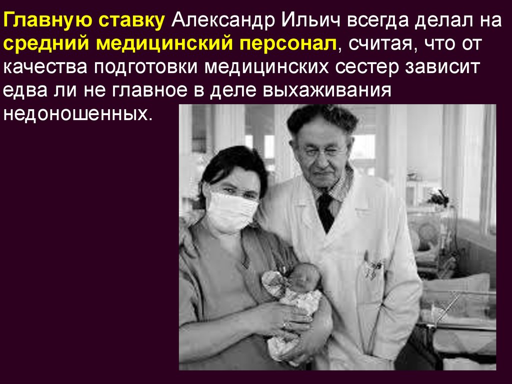 Главную ставку Александр Ильич всегда делал насредний медицинский персонал, считая, что от