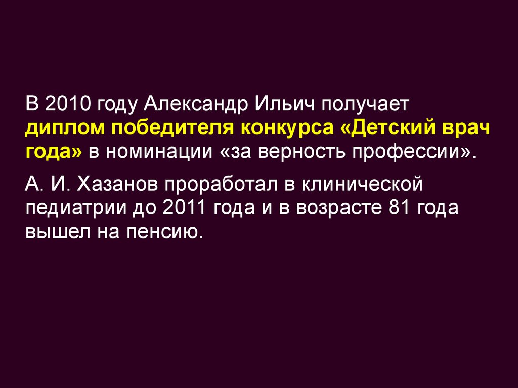 В 2010 году Александр Ильич получаетдиплом победителя конкурса «Детский врач