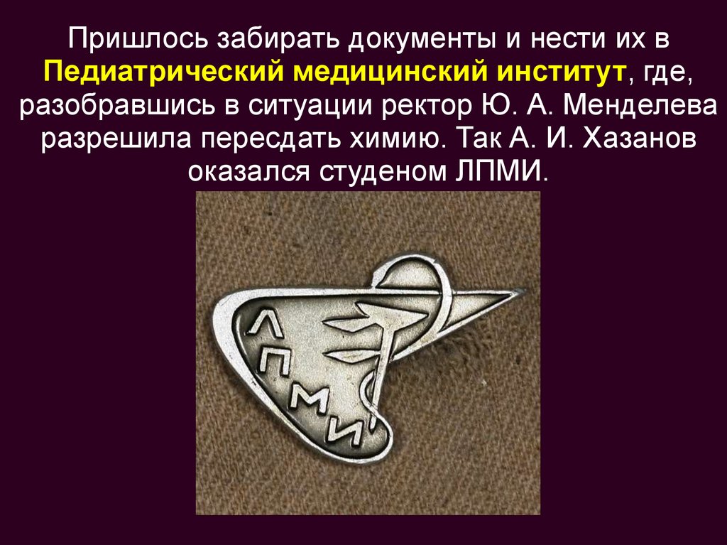 Пришлось забирать документы и нести их вПедиатрический медицинский институт, где,