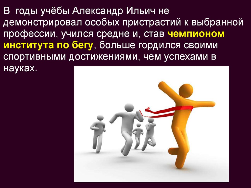 В годы учёбы Александр Ильич недемонстрировал особых пристрастий к выбранной