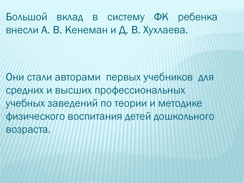 Большой вклад в систему ФК ребенкавнесли А. В. Кенеман и Д. В. Хухлаева.
