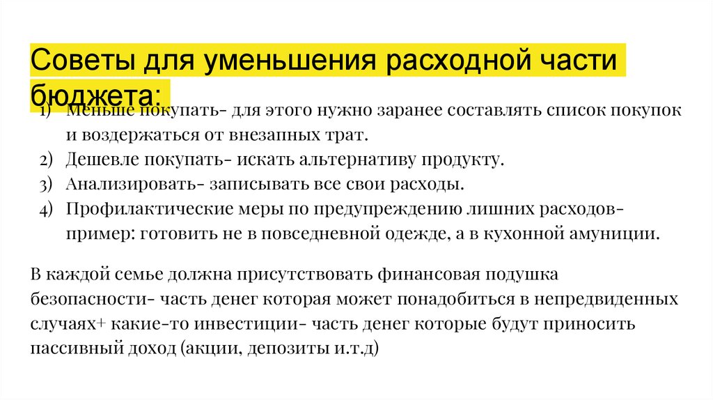 Советы для уменьшения расходной частибюджета: