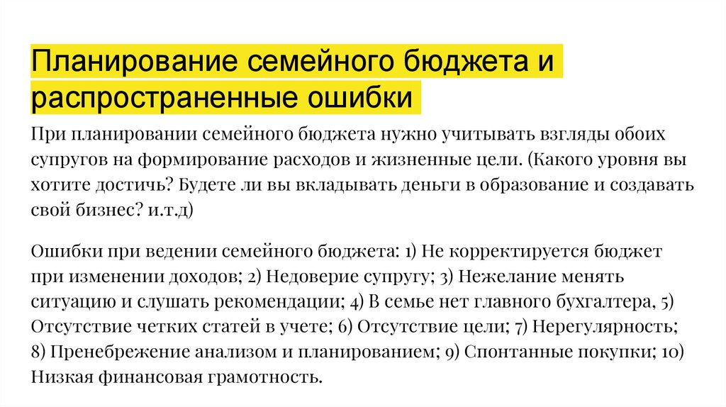 Планирование семейного бюджета ираспространенные ошибки