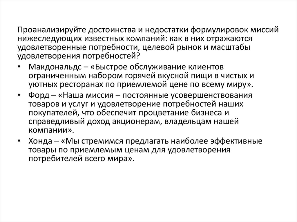 Проанализируйте достоинства и недостатки формулировок миссийнижеследующих известных компаний: как в них отражаются