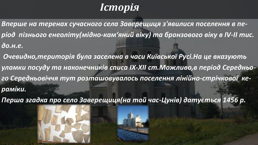 Перша згадка про село Заверещиця(на той час-Цунів) датується 1456 р.